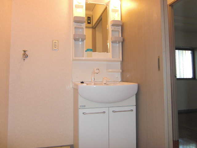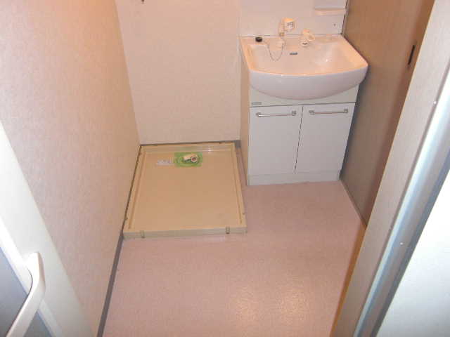使い勝手抜群の独立洗面台、室内洗濯機置場がある洗面脱衣所。