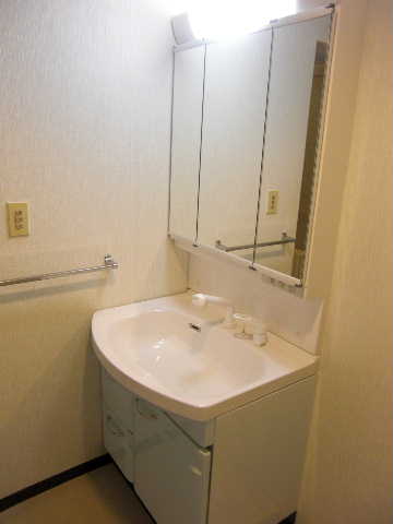 収納豊富な三面鏡付きシャンプードレッサーも、リフォーム済み☆