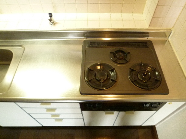 キッチンはグリル付きの3口ガスコンロシステムキッチンです