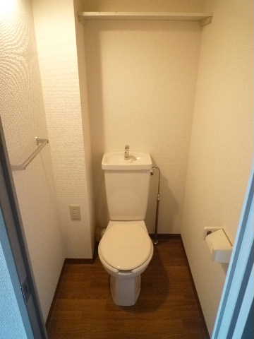 トイレにはタオルかけと棚が付いてます。コンセントがあるので、ウォームレット&ウォシュレット付けられます