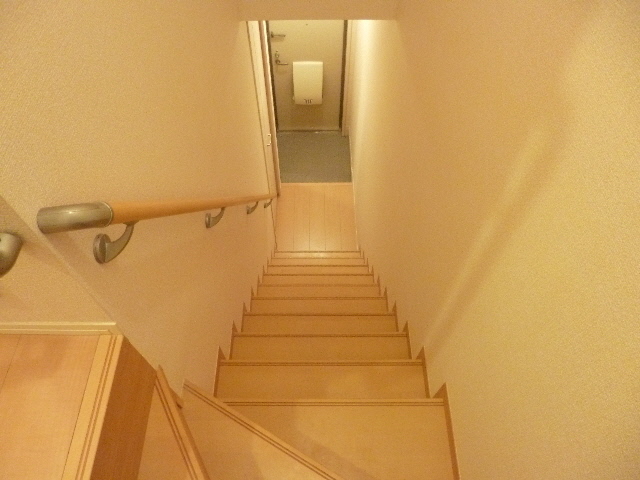 到着です。ありがとうございます。 こちらの階段を上がった2階です