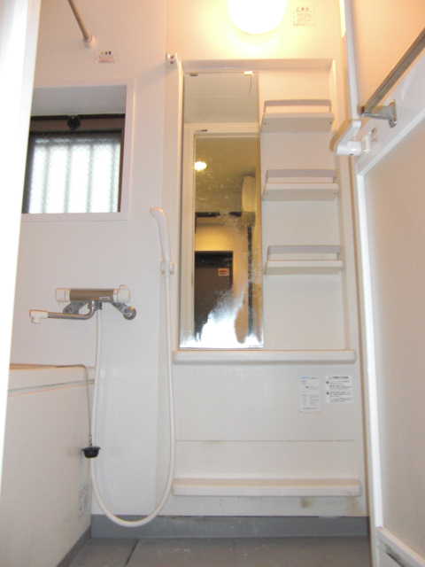 浴室内には大きな鏡と、こちらにも窓がございます。