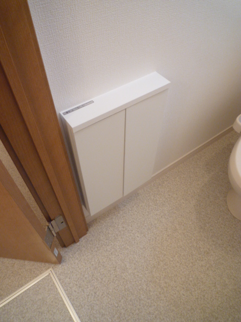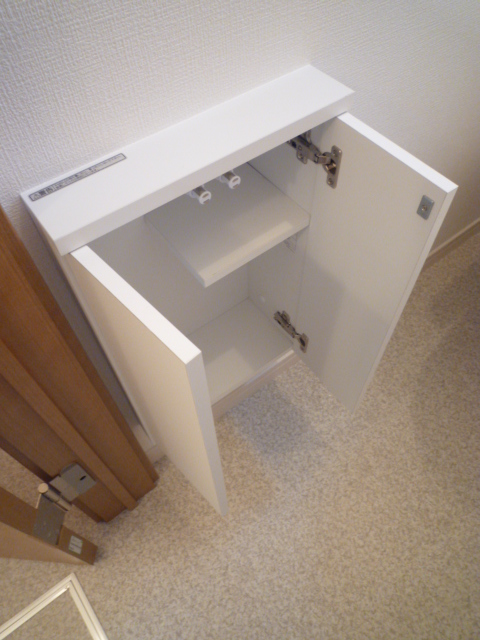 浴室横の小さ目の収納もタオルなど浴室周りの物をしまえます。