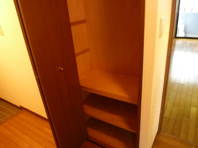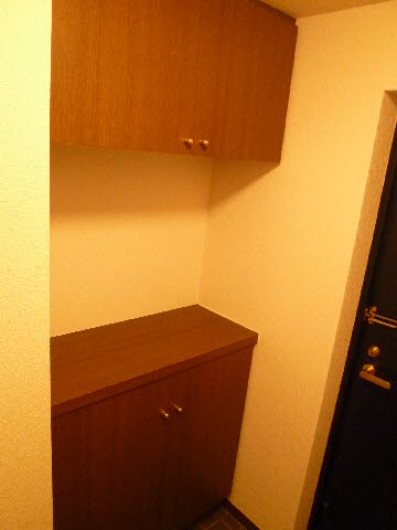 玄関ホール奥にも先程シューズボックスの他にも収納棚がございます。