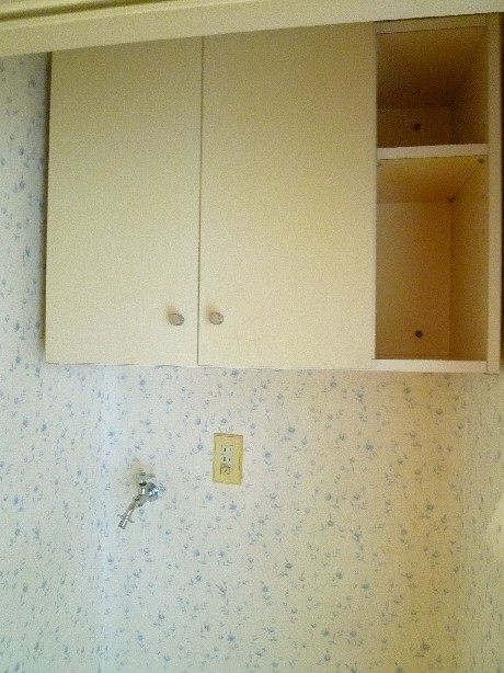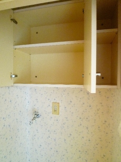 上部に収納があり、洗濯用品はこちらにしまっておけます