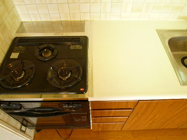 キッチンはグリル付きの3口ガスコンロシステムキッチンです