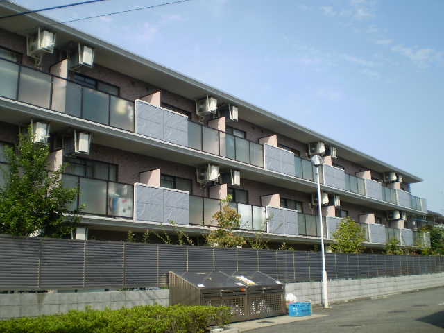 ベージュのタイル張り外観が、とてもお洒落な建物です
