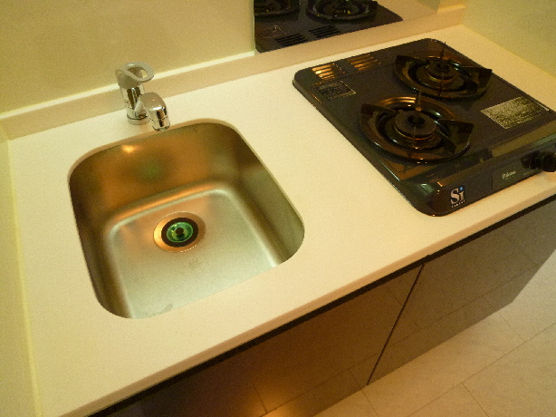 キッチン部分は、独立しておりますので匂いなどの心配も軽減されますね!また、お料理のしやすいシステムキッチン(ガス2口)です♪