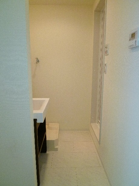キッチン背面が洗面脱衣スペースになっている少し変わった間取りです!ただ、仕切る事はできますので使い勝手は心配ございません!