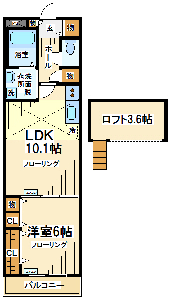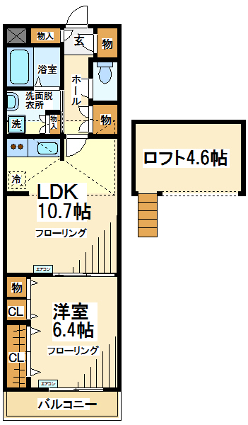 ロフトも4.7帖と十分な広さがありますので、荷物置きとしても、居室としても