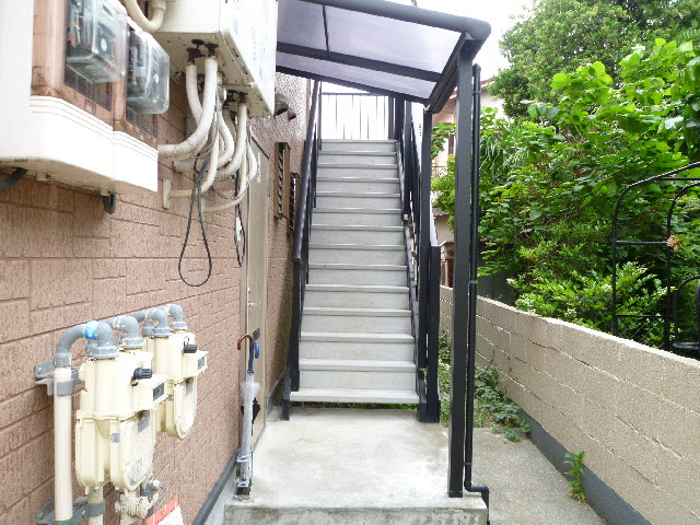 到着です。ありがとうございます。 こちらの階段を上がった2階です