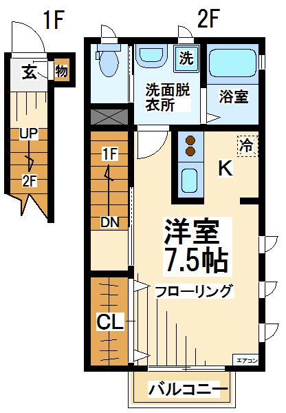 2Fは1Fよりも少し大き目な洋室7.5帖です