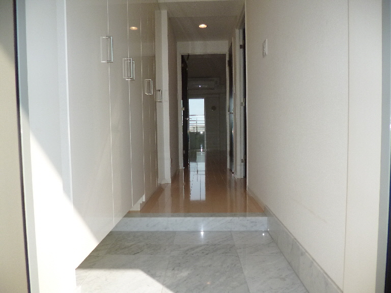 まずは玄関からです! 入るととっても広い玄関ホールは、下駄箱の下の間接照明に照らされて