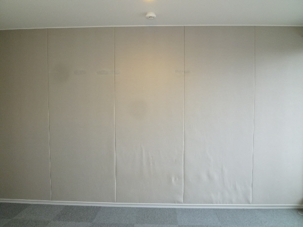 この壁は、防音の役目を果たしているんです。固くないスポンジのような素材が壁一面に張られています。