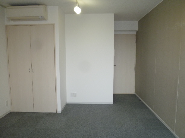 この壁は、防音の役目を果たしているんです。固くないスポンジのような素材が壁一面に張られています。お部屋の形は、正方形でも