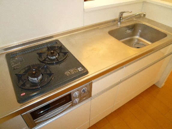 【設 備】 2口ガスコンロシステムキッチン(対面式カウンター有)、追い焚き、