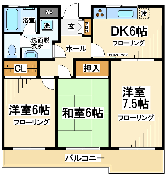 洋室7.5帖・洋室6帖・和室6帖の3部屋は、すべて南向きですので、日当たりは一日中最高です