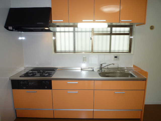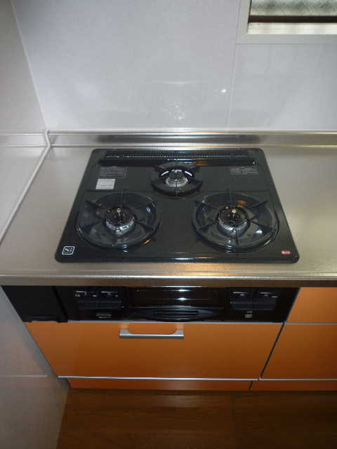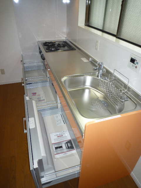 ガスコンロ3口+グリルに、大型シンク、そして極め付けの大型収納(引き出しタイプ)です
