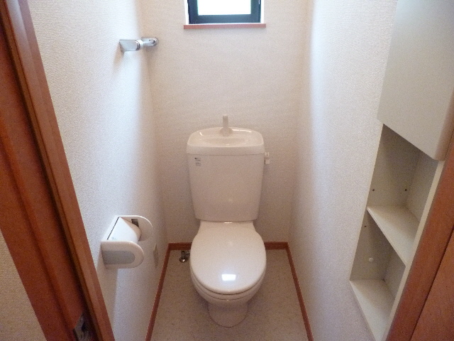 トイレ内にも 収納スペースがしっかりあり、また小窓が付いていて