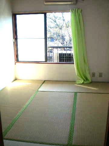 室内は大きな畳が6枚、フローリングよりも断熱性、保温性、防音性に優れており人に優しい