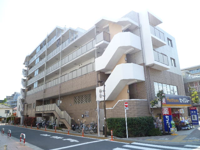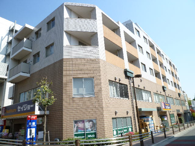 きたらもうすぐです 青い看板がレントハウス仙川店です。